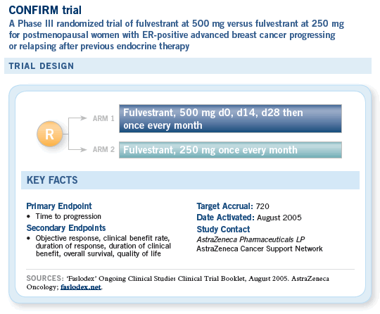 The pharmacokinetics of fulvestrant suggest a loading dose would be beneficial, so it concerns me that the comparison of fulvestrant to anastrozole in a tamoxifen-resistant population might not have revealed the true efficacy of fulvestrant. It showed fulvestrant to be at least as effective as anastrozole, but I expected it to be superior.