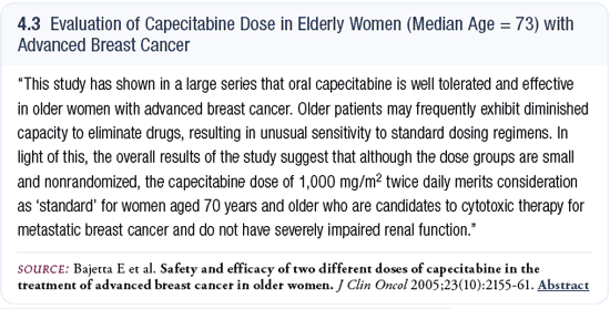 I find many of my older patients are attracted to capecitabine because it is an oral agent (4.3). Some of my younger patients think of intravenous therapy as more aggressive, and they prefer that strategy. But this perception is based on gut reaction rather than being reality based.