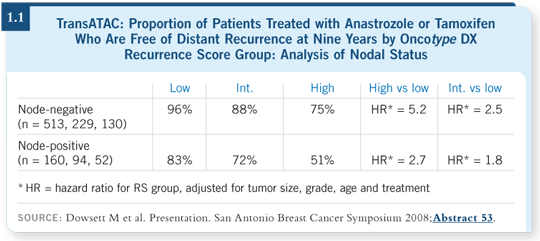 That is to say, you can utilize the Oncotype DX assay to determine the risk estimates for patients being treated with aromatase inhibitors and for patients being treated with tamoxifen.